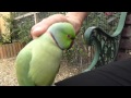 STROKING A BEAUTIFUL RING-NECKED PARAKEET
