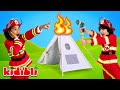 مهمة أطفال رجال الإطفاء: إطفاء حريق في الخيمة باستخدام شاحنات الإطفاء فيديو تعليمي للأطفال| Kidibli