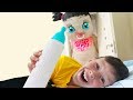 Ali and his little sister pretend play hide and seek with Feeding Bottle for kids video