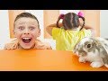 Ali and little sister Playing Hide and Seek with Funny Rubbit Max