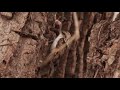 Птичка пищуха ищет еду на стволе дерева