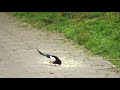 Утки сменяли реку на большую лужу после дождя