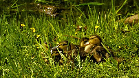 Утята бегают по листьям кувшинок
