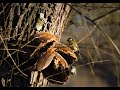 Птенец кукушка выпрашивает еду у пеночек - приёмных родителей