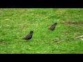 Чёрный дрозд расправляется с червячком