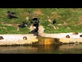 Галки и грачи на водопое, утки рядом отдыхают