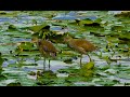 Водяные курочки бегают по кувшинкам