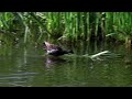 Камышница поймала стрекозу для своего птенца